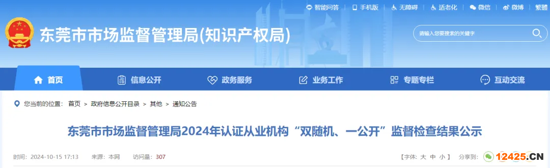 東莞市市場監(jiān)督管理局2024年認(rèn)證從業(yè)機(jī)構(gòu)“雙隨機(jī)、一公開”監(jiān)督檢查結(jié)果公示