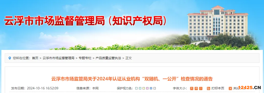 云浮市市場監(jiān)管局關(guān)于2024年認(rèn)證從業(yè)機(jī)構(gòu)“雙隨機(jī)、一公開”檢查情況的通告