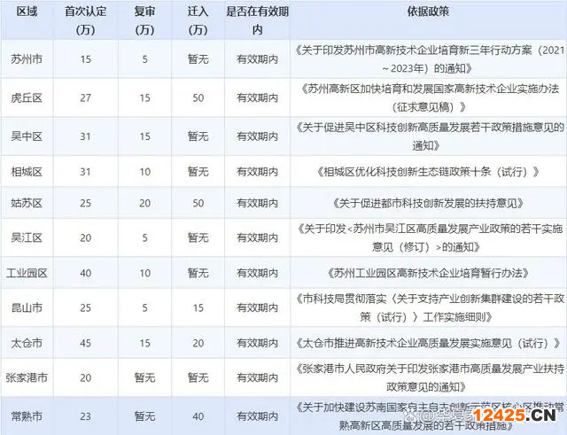 蘇州各地區(qū)高新技術(shù)企業(yè)補(bǔ)貼匯總