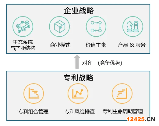 前述形成的專(zhuān)利戰(zhàn)略,基本上是在對(duì)產(chǎn)業(yè)、企業(yè)自身、競(jìng)爭(zhēng)者的分析和研究的基礎(chǔ)上形成,與企業(yè)戰(zhàn)略制定的思路方向基本是一致的,在底層上是能支撐到企業(yè)發(fā)展戰(zhàn)略的。但還是有關(guān)鍵的一步,對(duì)于明確制定有企業(yè)戰(zhàn)略的企業(yè),要與企業(yè)戰(zhàn)略再做對(duì)齊、校準(zhǔn),特別是支撐到體現(xiàn)企業(yè)競(jìng)爭(zhēng)優(yōu)勢(shì)構(gòu)建的商業(yè)模式、價(jià)值主張、產(chǎn)品和服務(wù)。通過(guò)進(jìn)一步校準(zhǔn)、調(diào)整專(zhuān)利戰(zhàn)略及戰(zhàn)略實(shí)施的步驟或優(yōu)先級(jí),在支撐、賦能企業(yè)戰(zhàn)略更好地實(shí)現(xiàn)的同時(shí),也使專(zhuān)利戰(zhàn)略融合為企業(yè)戰(zhàn)略的一部份。