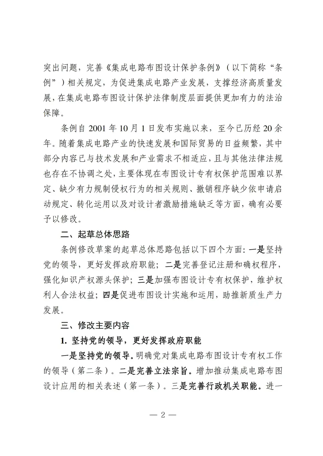 2. 《集成電路布圖設計保護條例修改草案(征求意見稿)》起草說明