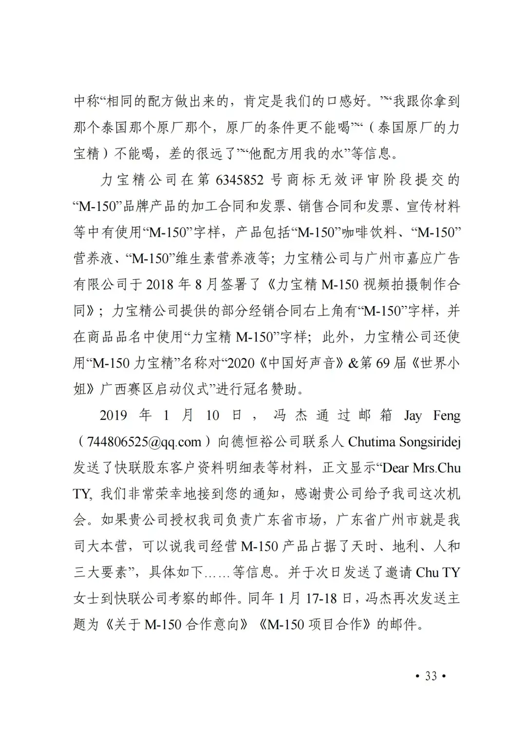 核心提示:一、案件背景泰國德恒裕公共有限公司的M-150能量飲料自1985年推出以來,一直在泰國市場上占據(jù)領(lǐng)先地位,其市場份額超過了紅牛和卡拉寶,是
