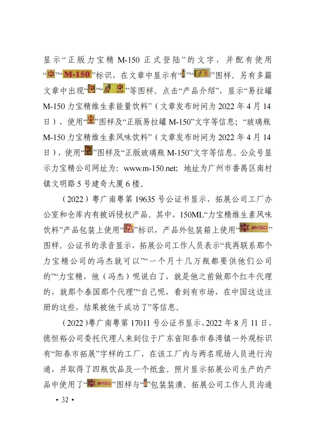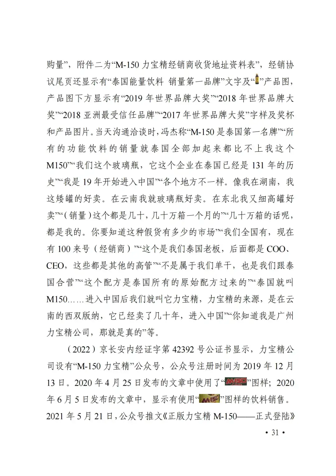 力寶精公司自2018年6月起生產(chǎn)、銷售了多款“M-150”維生素能量飲料。