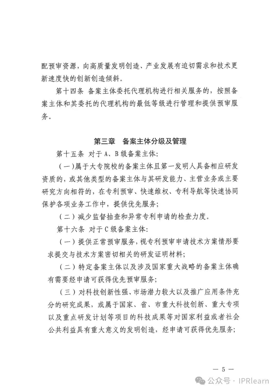 為引導(dǎo)備案主體、專利代理機構(gòu)提高專利申請質(zhì)量,支持更多高質(zhì)量、高價值專利申請進入國家知識產(chǎn)權(quán)局專利快速審查通道,按照國家知識產(chǎn)權(quán)局有關(guān)文件精神和要求,合肥市知識產(chǎn)權(quán)保護中心修訂了《合肥市知識產(chǎn)權(quán)保護中心備案主體、代理機構(gòu)分級分類管理辦法》,現(xiàn)予印發(fā),請認真貫徹執(zhí)行。