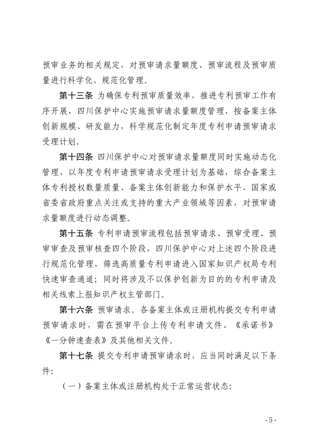 《四川省知識產(chǎn)權(quán)保護中心專利申請預(yù)審服務(wù)管理辦法》全文發(fā)布