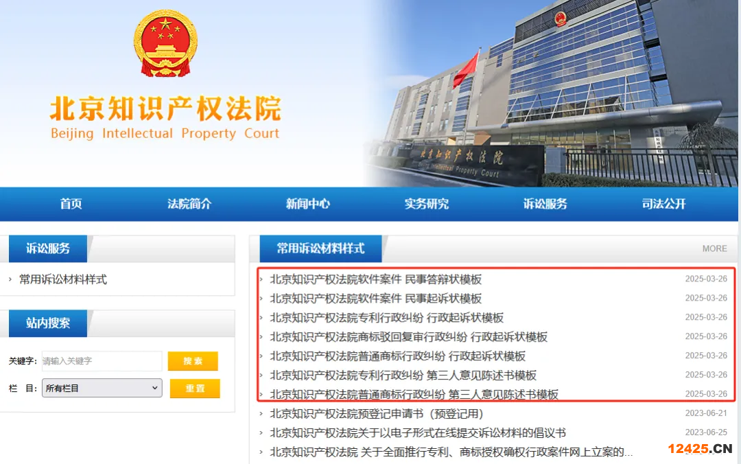 訪問北京知識產(chǎn)權(quán)法院官方網(wǎng)站https://bjzcfy.bjcourt.gov.cn,下拉至“常用訴訟材料樣式”,點(diǎn)擊所需模板下載。