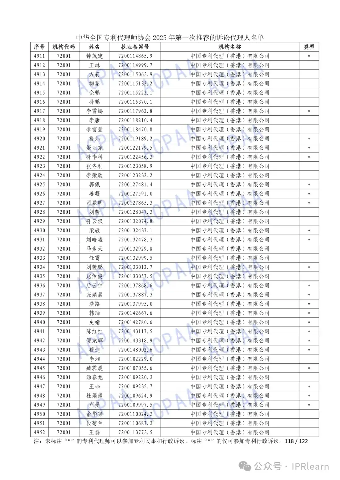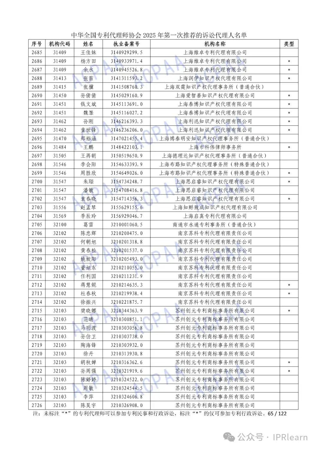 1. 中華全國專利代理師協(xié)會2025年第一次推薦的訴訟代理人名單