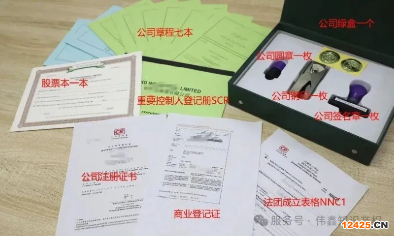 審核通過(guò)后,可領(lǐng)取注冊(cè)文件,包括:公司注冊(cè)證書(shū)、商業(yè)登記證、印章三枚、公司章程(10 本)、綠盒(用于存放資料)。