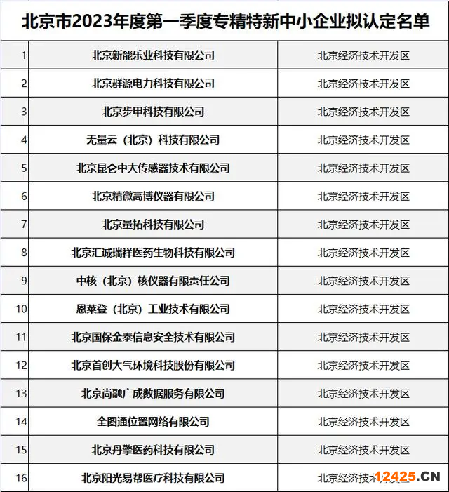 2023年第一季度北京市專精特新中小企業(yè)擬認(rèn)定名單(經(jīng)開區(qū)部分)