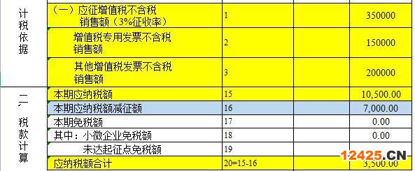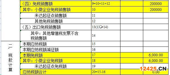1、這里注意下個體戶填不了10行和18行,需要填寫在11行和19行,不屬于小微企業(yè)免稅屬于未達(dá)起征點減征