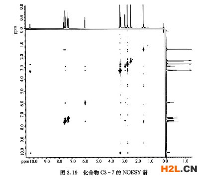 其NOESY譜和NOESY譜的局部放大譜分別如圖3.19和圖3.20所示