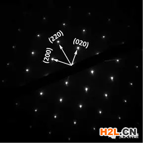 10.最后處理結(jié)果如圖所示。需要注意的是,單晶材料中衍射點(diǎn)所對應(yīng)的衍射晶面滿足矢量疊加原則。