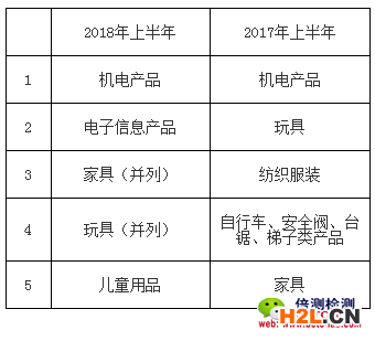 2018年上半年中國消費(fèi)品出口到歐美地區(qū)被通報(bào)召回的情況統(tǒng)計(jì)