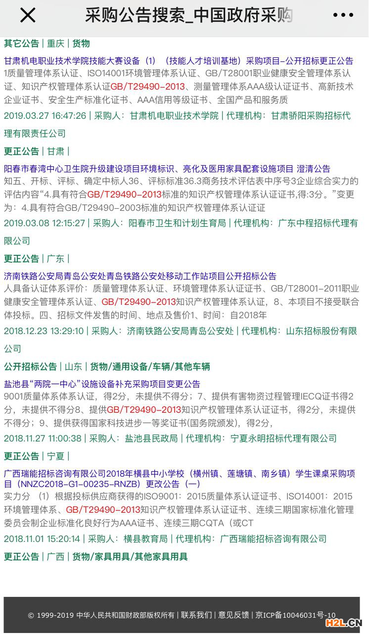 蘇州市滄浪中學(xué)校招標(biāo)要求之一:產(chǎn)品生產(chǎn)廠家獲得GB/T29490-2013知識(shí)產(chǎn)權(quán)管理體系認(rèn)證,3分。