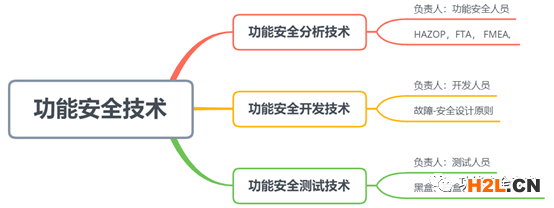 從經(jīng)驗(yàn)的角度來(lái)總結(jié),功能安全技術(shù)無(wú)非可以劃分為以下三方面:功能安全分析技術(shù)、功能安全開發(fā)技術(shù)與功能安全測(cè)試技術(shù),每種技術(shù)有其常用的方法與原則,對(duì)應(yīng)相應(yīng)的人員。所以,對(duì)于初學(xué)者,可以根據(jù)自己的角色先學(xué)習(xí)自身職責(zé)范圍的相應(yīng)功能安全內(nèi)容。