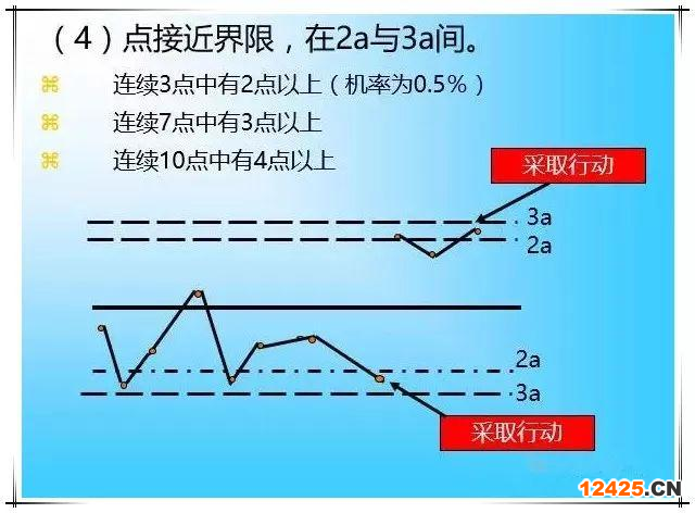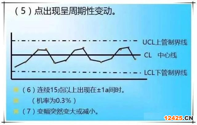 ①連續(xù)25點以上出現(xiàn)在管制界限線內(nèi)時(極率為93.46%)