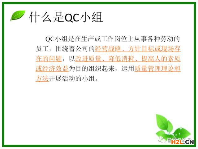 QCC英文全稱是QualityControl Circle,中文譯成“品管圈”。QCC品管圈是同一個(gè)工作現(xiàn)場(chǎng)或工作相互關(guān)聯(lián)區(qū)域的人員自動(dòng)自發(fā)地進(jìn)行品質(zhì)管理活動(dòng)所組成的小組。