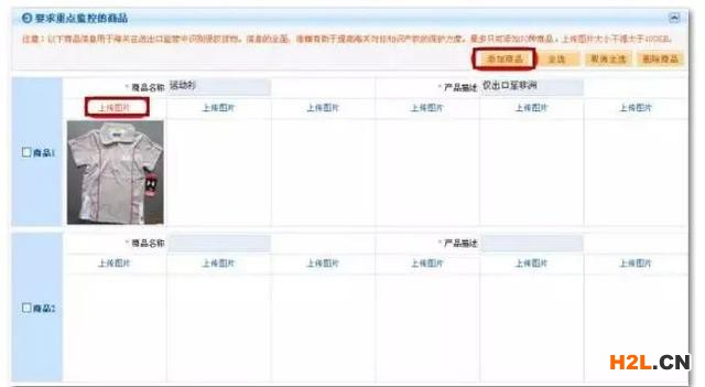 上圖的“增加重點(diǎn)保護(hù)商品”欄目主要用于供權(quán)利人錄入希望海關(guān)重點(diǎn)保護(hù)的商品信息,幫助我們在進(jìn)出口監(jiān)管中更好地識(shí)別侵權(quán)貨物,點(diǎn)擊紅色框部分進(jìn)行商品添加和上傳圖片即可。