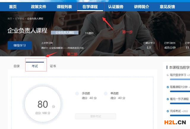 第四步:學(xué)習(xí)時長滿足后進(jìn)行考試,考試步驟就不主意解釋了,合格分?jǐn)?shù)為70分。