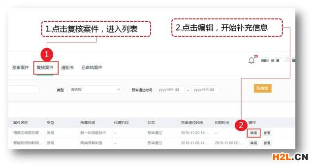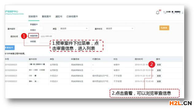 在首頁【專利申請】模塊,通過【預審案件】→【審查信息】,進入預審案件列表,點擊【查看】可瀏覽預審信息與進度。