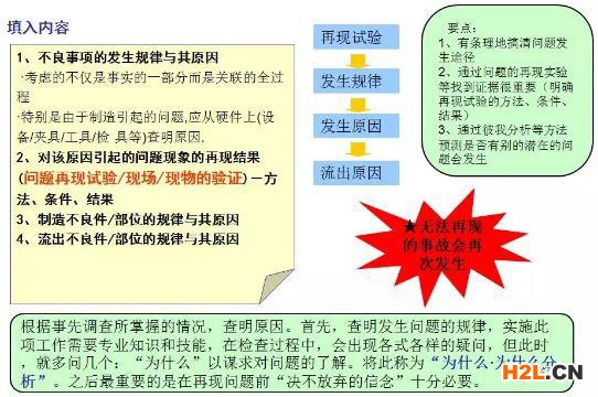 為什么?為什么?為什么?為什么?為什么?┄┄從發(fā)生原因、流出原因分析。不要推委為個人責任,而需最終挖掘到公司、部門的體制、組織上的問題點,明確化。