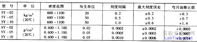 那一點(diǎn)。如使用SY-Ⅰ型或SY-Ⅱ型石油密度計(jì),仍讀取液體上彎月面與密度計(jì)于管相切處的刻度。SY-Ⅰ型精度比較高,其最小分度值為0.0005g/cm3 ,適用于油品計(jì)量;SY-Ⅱ型精度較低,其最小分度滇為0.001g/cm3,適用于油品的生產(chǎn)分析。對于使用金屬密度計(jì)量簡測定完全不透明試樣時(shí),要確保試樣液面裝滿到距離量筒頂端5mm以內(nèi).這樣才能準(zhǔn)確讀取密度計(jì)讀數(shù)。
