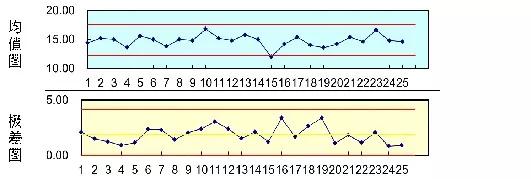 當(dāng)Xbar-R控制圖畫(huà)出來(lái)之后,一般先看R圖的趨勢(shì),再看Xbar圖。R反應(yīng)的是每個(gè)子組組內(nèi)的變差,它反映了在收集數(shù)據(jù)的這個(gè)時(shí)間段,制程所發(fā)生的變差,所以就代表了組內(nèi)固有的變差;Xbar圖反映的是每個(gè)子組的平均值的變化趨勢(shì),所以其反映的是組間的變差。組內(nèi)變差可以接受時(shí),說(shuō)明分組是合理的;組間變差沒(méi)有特殊原因時(shí),表明在一段時(shí)間內(nèi)過(guò)程的管理是有效的、可接受的。