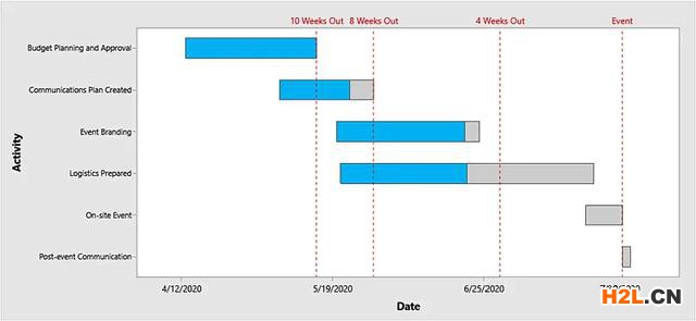 良好的甘特圖應能為您的項目提供有效的概述,包括: