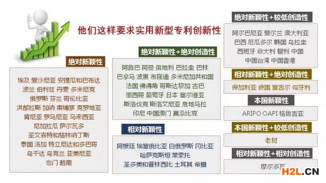 不同國家/地區(qū)的實用新型制度,對新穎性和創(chuàng)造性往往有不同的要求,通常可歸納為幾類: