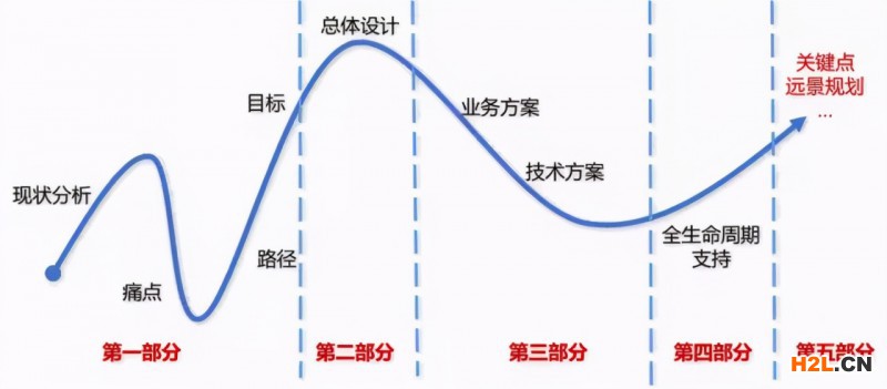 找到問(wèn)題了,就要解決問(wèn)題。先定個(gè)小目標(biāo),讓客戶感覺(jué)到與他們的期望相符。從現(xiàn)狀到目標(biāo)肯定有差距,那就要說(shuō)明差距在哪里,用什么樣的路徑逐步走向目標(biāo)。要給出企業(yè)未來(lái)發(fā)展的目標(biāo)和路徑,讓企業(yè)看到未來(lái)的可行之路和近期可以達(dá)到的目標(biāo)。