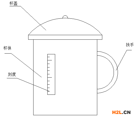 在A專利進行申請后,過了一段時間,發(fā)明人發(fā)現(xiàn),人們對于喝水量有精準(zhǔn)控制的需求,又在A專利的基礎(chǔ)上,增加了刻度;如下圖所示,