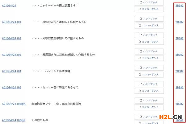 目前,日本特許廳已經將上述二維表的形式改為列表形式,但其本質還是一樣的。
