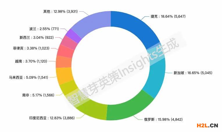 根據(jù)智慧芽全球?qū)@麛?shù)據(jù)庫分析,2013年以來,中國申請人在“一帶一路”沿線國家/地區(qū)專利申請總量已超6萬件,除韓國外,捷克、新加坡、俄羅斯、印度尼西亞、南非、馬來西亞、越南等也是中國申請人的主要布局國家。