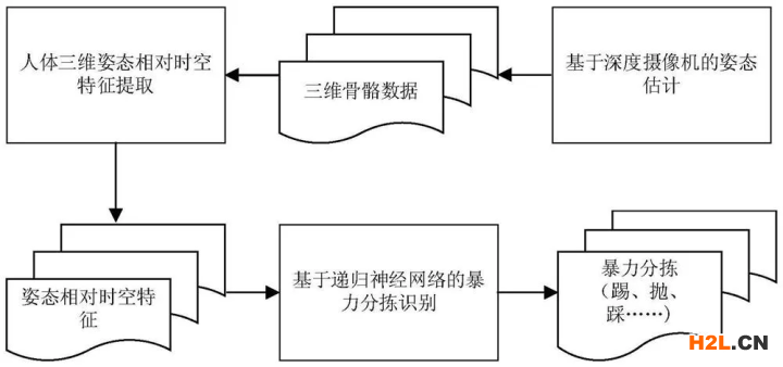 專利摘要顯示該方法包括以下步驟:基于深度攝像機(jī)的姿態(tài)估計(jì):把人體姿勢估計(jì)問題轉(zhuǎn)換為對深度攝像機(jī)捕獲到的深度圖像像素進(jìn)行分類的問題,通過使用隨機(jī)森林的方法得到人體姿態(tài)估計(jì);人體三維姿態(tài)相對時(shí)空特征提?。禾崛∪S姿態(tài)中關(guān)節(jié)形成的點(diǎn)、線、面幾何元素之間的相對空間位置及其變化的度量作為姿態(tài)的特征表示;基于遞歸神經(jīng)網(wǎng)絡(luò)的暴力分揀識別:通過長短時(shí)記憶型模型LSTM對時(shí)間上連續(xù)的從人體三維姿態(tài)中提取的姿態(tài)時(shí)空相對特征進(jìn)行建模訓(xùn)練,從而實(shí)現(xiàn)對快遞暴力分揀行為的識別。