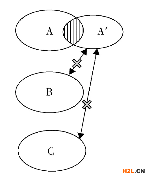 如圖2所示,A、B、C為專利申請公布文本中分別由一個獨立權利要求及其從屬權利要求組成的三組權利要求的保護范圍,A′為專利授權公告文本中的一個權利要求的保護范圍。①如果權利人主張具有關聯(lián)或對應關系的A、A′,且被訴技術方案均落入該兩個保護范圍,則可以認定在臨時保護期內(nèi)實施了專利。②如果權利人主張不具有關聯(lián)或對應關系的B、C和A′,則即使被訴技術方案分別同時落入A′,以及B或C,也不能認定在臨時保護期內(nèi)實施了專利。