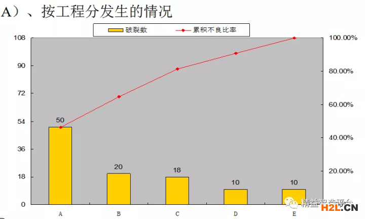 3)、按工程分/操作分的情況發(fā)生A元件破裂柏拉圖