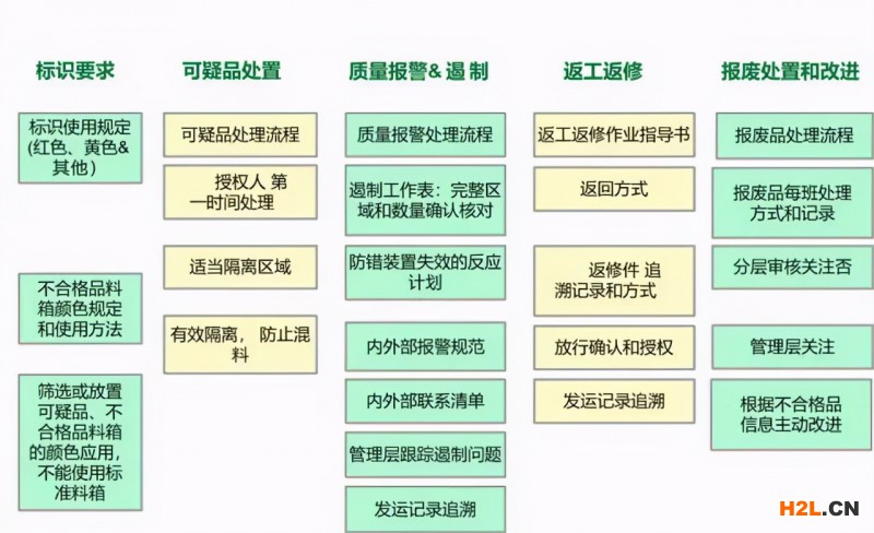 當然,對于生產線的不合格品,推薦使用電子化的跟蹤管理系統(tǒng)進行記錄、處置和跟蹤,如MES系統(tǒng)的質量模塊,并要求接班、產品切換時必須及時處置不合格品。