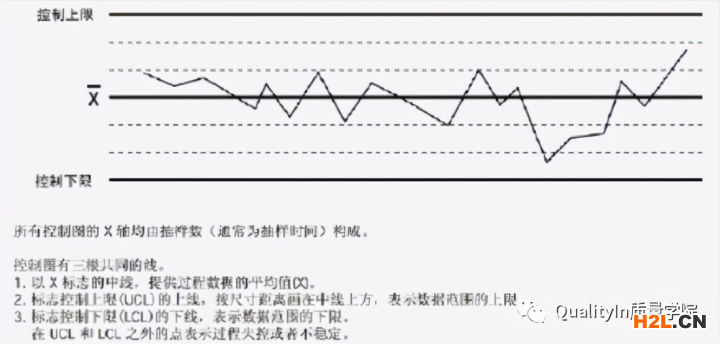 中心線X一般為過程數(shù)據(jù)的平均值,UCL(上限控制值)為平均值加x倍的標準偏差,LCL(下線控制值)為平均值減x倍的標準偏差,每個點是一個測量值,如果某個點超出了上限或下限,說明過程在這時受到了特殊原因的影響。當過程沒有特殊原因偏差時,過程是穩(wěn)定的;當過程受到特殊原因偏差影響時,過程是不穩(wěn)定的。穩(wěn)定的過程可以預(yù)測結(jié)果,反之則不然。