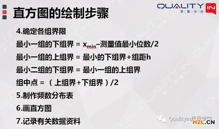 定義組界。最小一組的下組界=最小值-測量值的最小位數(shù)(一般是1或0.1)*0.5.最小一組的上組界=最小一組的下組界+組距,第二組的下組界為第一組的上組界,第二組的上組界=第二組的下組界+組距,依次類推。