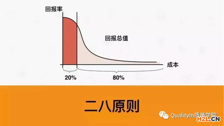 此法則是由意大利經(jīng)濟學(xué)家帕累托提出的,在反映質(zhì)量問題、展現(xiàn)質(zhì)量改進項目等領(lǐng)域有廣泛應(yīng)用。排查質(zhì)量問題,我們只要花費少量精力和時間解決累計占比達到80%的導(dǎo)致問題的因素,就能顯著改善質(zhì)量問題,沒必要花費更多的精力和時間去解決20%的問題。