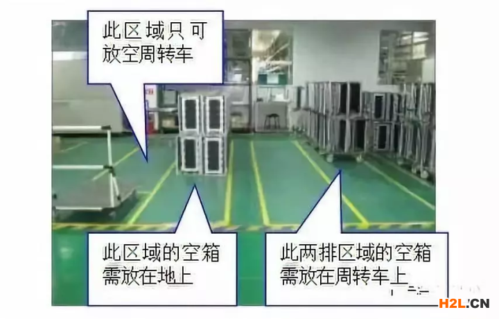 標(biāo)準(zhǔn):周轉(zhuǎn)車在不使用時,需放在指定區(qū)域內(nèi),保持與劃定區(qū)域成平行或?qū)ΨQ的原則,不可歪斜,不可超出規(guī)劃區(qū)域以外或壓線。