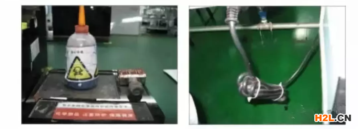 標(biāo)準(zhǔn):應(yīng)用指定的容器放置化學(xué)用品,并做好標(biāo)識。用飲料瓶裝洗板水、防潮油等化學(xué)用品,容易造成他人誤飲、誤用,危害人身安全,