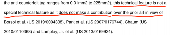 然而,判定該相同或相應的特定技術(shù)特征是否相對于現(xiàn)有技術(shù)而言具有創(chuàng)造性,需要審查員對專利申請作出實質(zhì)性工作之后(即進行相關(guān)現(xiàn)有技術(shù)的檢索工作并基于檢索到的現(xiàn)有技術(shù)對該專利申請的新穎性/創(chuàng)造性作出一定論述)才能夠得出,因此,中國專利申請中的單一性問題是在兩個或以上的獨立權(quán)利要求之間才會發(fā)生的,并且通常是在專利申請進入到專利實質(zhì)審查工作之后才會出現(xiàn)而且通常伴隨著技術(shù)方案的新穎性/創(chuàng)造性問題一起出現(xiàn)。