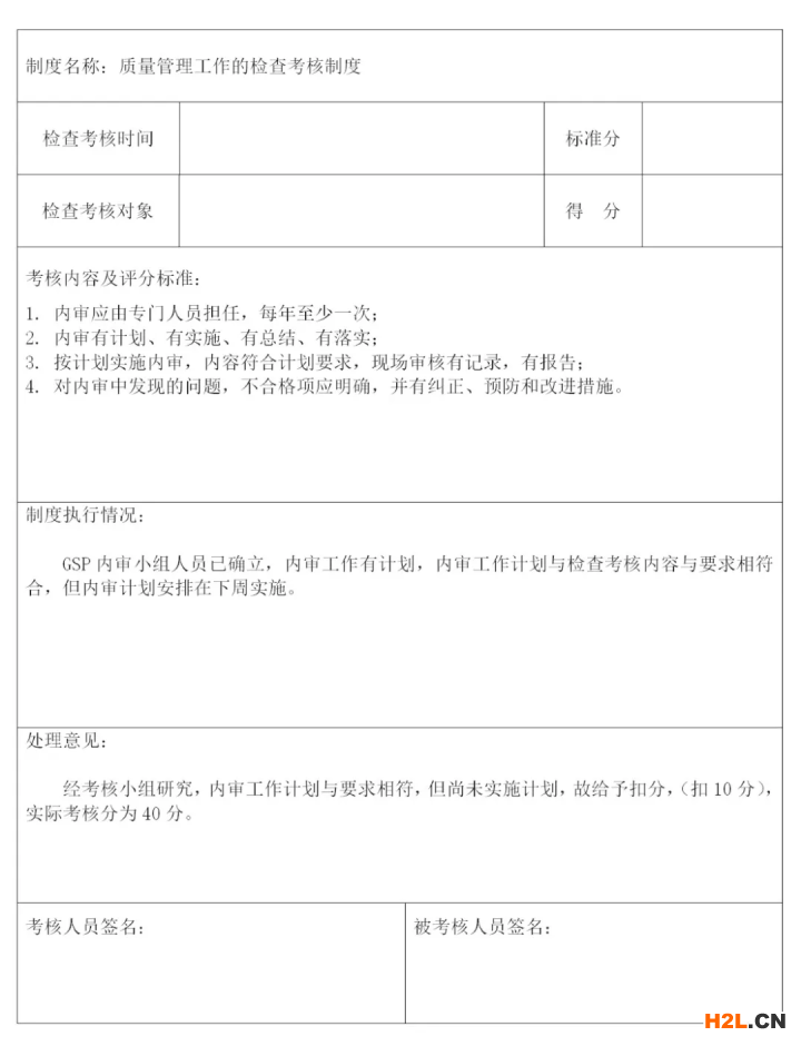│質(zhì)量管理制度執(zhí)行情況考核記錄表│