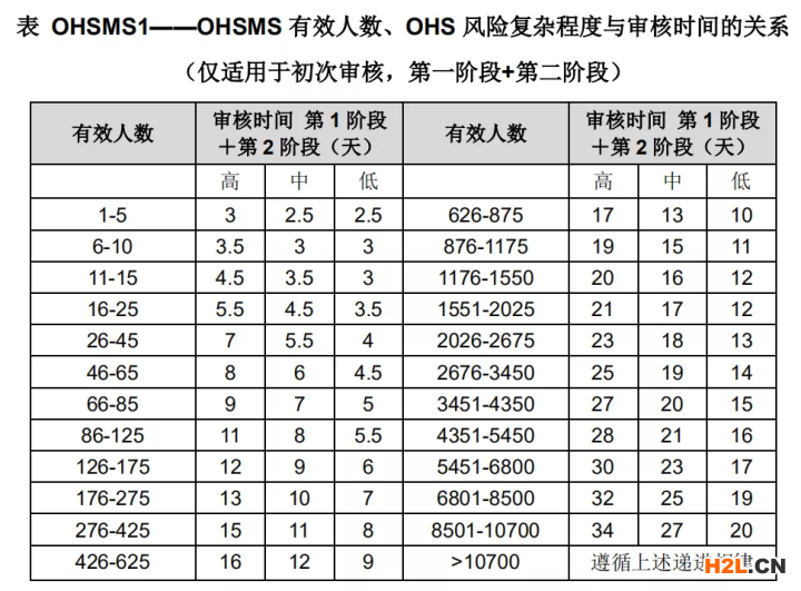 1. 審核時間按高、中、低的 OHS 風(fēng)險復(fù)雜程度分別顯示。
