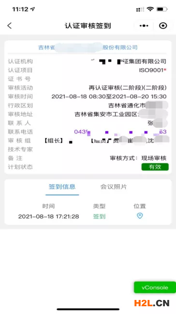 簽到時(shí)須上傳現(xiàn)場(chǎng)審核首、末次會(huì)議照片(各1—3張),以審核組為單元,照片應(yīng)能識(shí)別審核組全體成員(含技術(shù)專家、遠(yuǎn)程審核人員、實(shí)習(xí)審核人員)及被審核企業(yè)。
