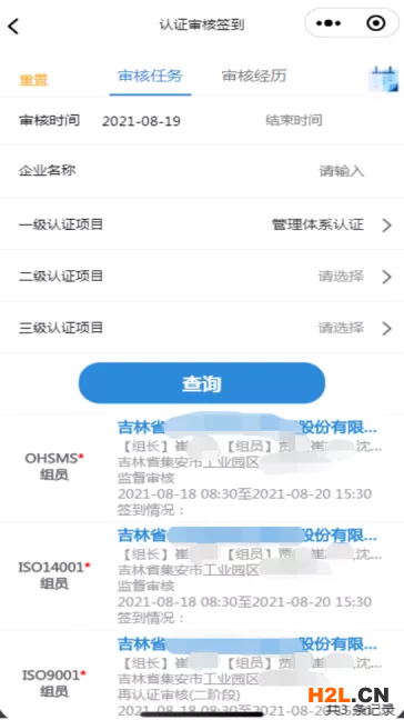 質(zhì)量管理體系、環(huán)境管理體系職業(yè)健康安全管理體系(以下簡稱三體系)領(lǐng)域。小程序中用紅色*號(hào)提示。多領(lǐng)域?qū)徍?同一天同一家企業(yè)多個(gè)審核計(jì)劃),根據(jù)不同領(lǐng)域情況,可以選擇分別簽到/簽退,或者同時(shí)簽到/簽退:即簽到/簽退任意一個(gè)審核計(jì)劃,同一天同一家企業(yè)其他審核計(jì)劃默認(rèn)簽到。