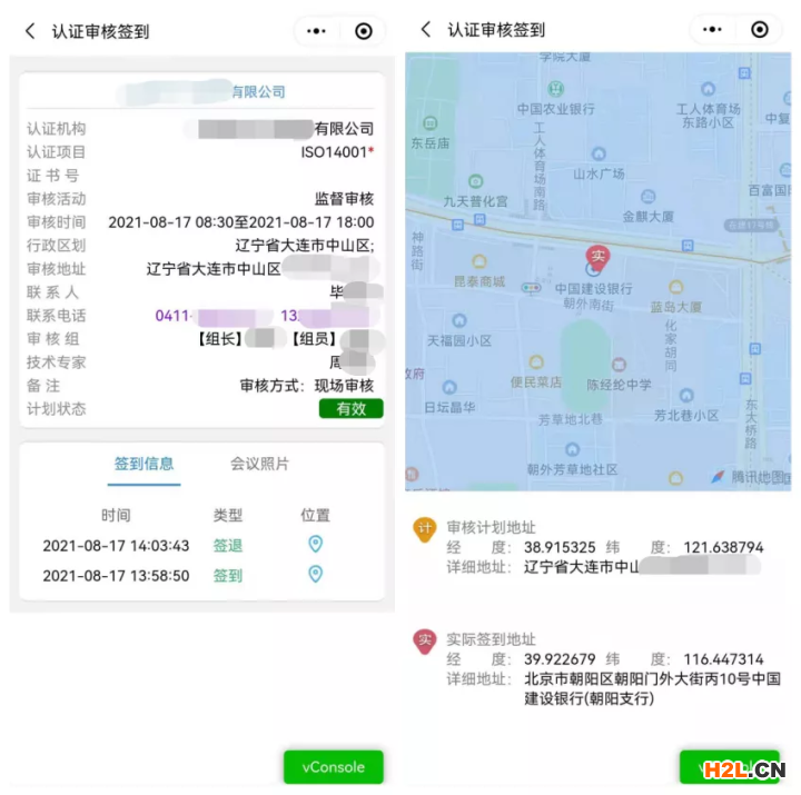 若當(dāng)天有現(xiàn)場(chǎng)審核任務(wù),在審核結(jié)束之前、任何地點(diǎn)都可以簽到,系統(tǒng)后臺(tái)記錄簽到位置/時(shí)間。