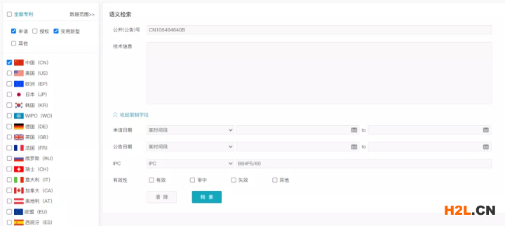 隨著專利數(shù)據(jù)庫的發(fā)展,數(shù)據(jù)量全已經(jīng)是一個最基本的評判指標了,智能化的傻瓜型檢索方式能夠幫助企業(yè)非專業(yè)的IPR經(jīng)過短期培訓也能夠勝任普通的檢索要求;因此,為了使專利數(shù)據(jù)庫的使用更加人性化,語義檢索也成為各大專利數(shù)據(jù)庫宣傳的重點。經(jīng)研究過后,筆者發(fā)現(xiàn)當前布爾與語義的配合存在兩種方式,一種是先布爾限定后語義排序的方式;第二種是先語義檢索出固定量的專利(例如2000條),再用布爾限定在其中繼續(xù)篩選,也就是先語義后布爾的方式。