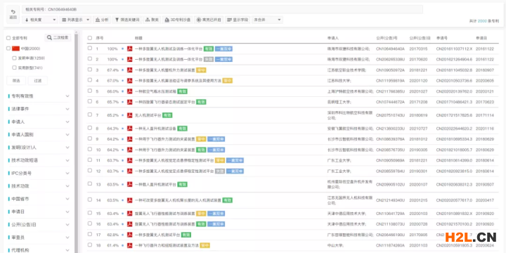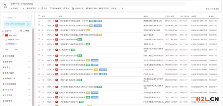 單獨使用布爾檢索式(TIABC=(無人機))檢索,與布爾+語義的檢索結果相同,也是75229件專利,但檢索結果中無相關度百分比,排序發(fā)生了變化。